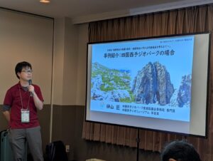 当協議会事務局専門員の榊山からは、四国西予ジオパークにおける地質物品に関する諸問題を啓発する取り組みについて紹介がありました。