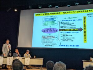 分科会「地質物品の保護と販売 ~地質物品に代わる代替商品を考えよう!~」では、当協議会のアドバイザーである愛媛大学の榊原正幸先生が基調講演で登壇。インドネシア・ゴロンタロ州における零細小規模金採掘(ASGM)の実態調査や、ASGMの代替となる持続可能な産業構築の支援の取り組みをご紹介され、ジオパークがなぜ「地質物品の保護」を大切にするのか、その背景となる社会的課題を説明していただきました。