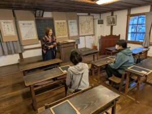 この日は、宇和盆地に始まり、重伝建に選定されている卯之町の町並み、平成30年豪雨の記憶と記録を語り継ぐ災害伝承展示室、「かまぼこの板の絵」でおなじみのギャラリーしろかわ、高川地域づくり会が保全する穴神鍾乳洞などを見学しました。