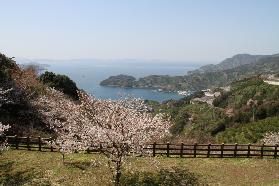 野福峠から眼下に広がるのが宇和海のリアス海岸です。海まで急傾斜地が迫り、複雑に入り組んだリアス海岸は、1万年前ごろ、気温が高くなって氷河が溶け、海面が上昇したことで谷に水が浸入して形成されたと考えられています。