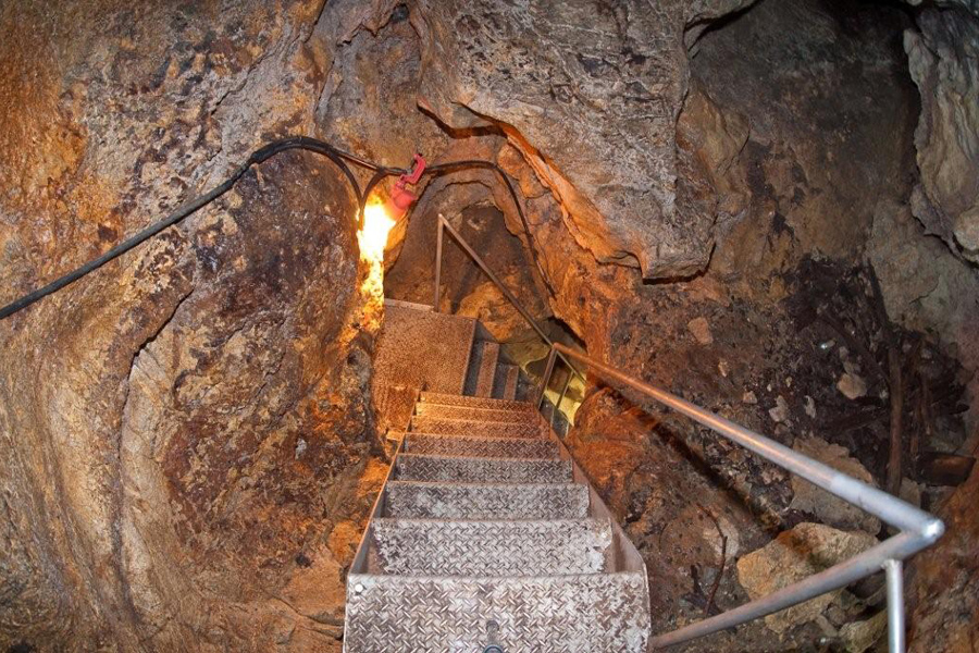 穴神鍾乳洞は、1969(昭和44)年に地元の中学生によって発見されました。中生代ジュラ紀にできた約300mにおよぶ鍾乳洞では約100m(注1)の遊歩道が整備され、気軽に洞窟体験ができます。