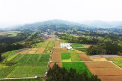 ◎魚成の河成段丘は一宮神社からよく見えます